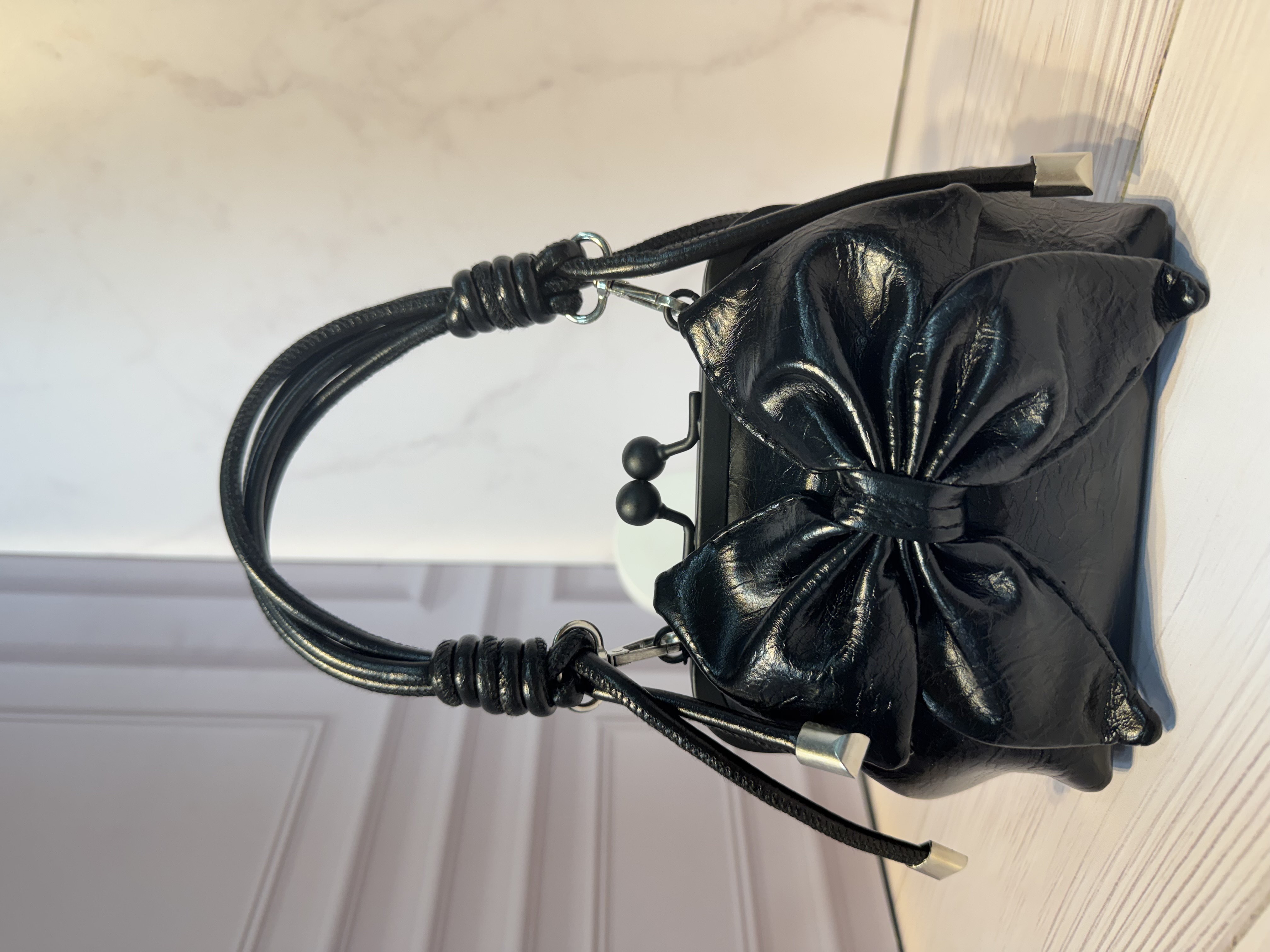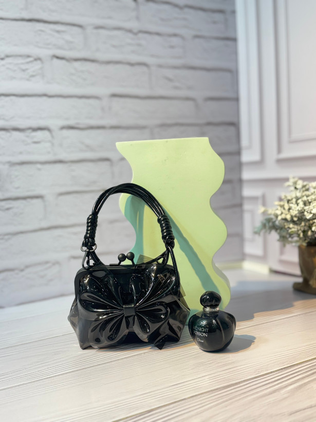 این کیف مینی مجلسی با طراحی خاص پاپیونی و سطح براق، انتخابی متفاوت برای استایلهای خاص و چشمگیر است. فرم برجسته پاپیون در قسمت جلوی کیف، جلوهای فانتزی و هنری ایجاد کرده که بلافاصله توجه را به خود جلب میکند و این مدل را به یک اکسسوری شاخص در استایل شب تبدیل میسازد.